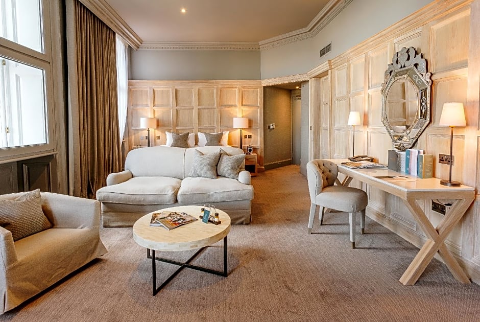 Wenn der Tag zur Nacht wird, ruhen Sie sich in einer der geräumigen Unterkünfte des Hotels aus, die für Komfort und Entspannung gestaltet sind. Mit einer Vielzahl von Zimmertypen zur Auswahl, einschließlich des Deluxe Familienzimmers oder der eleganten Penthouse-Suite, werden Sie garantiert die perfekte Ecke für Ihren Aufenthalt finden. Alle Zimmer sind rauchfrei, was eine frische und einladende Umgebung gewährleistet. Schließlich verdient Ihr schottisches Abenteuer einen erholsamen Abschluss. Also packen Sie Ihre Koffer und bereiten Sie sich auf ein unvergessliches Erlebnis bei [The Scotsman Hotel] vor; Edinburghs Beste rufen Ihren Namen!