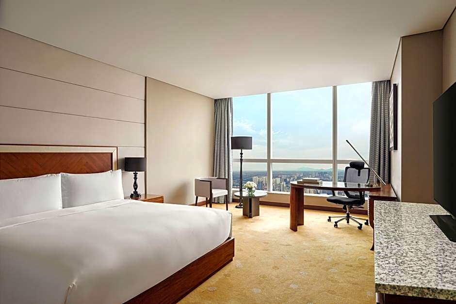 Its a great hotel. Very nice rooms and lobby, great breakfast. Great facilities with large gym, swimming pool, basketball court on 7th floor, lounge on 71st floor for club members. Fantastic views as hotel is on floors 62 - 71. Its a really great place to stay.