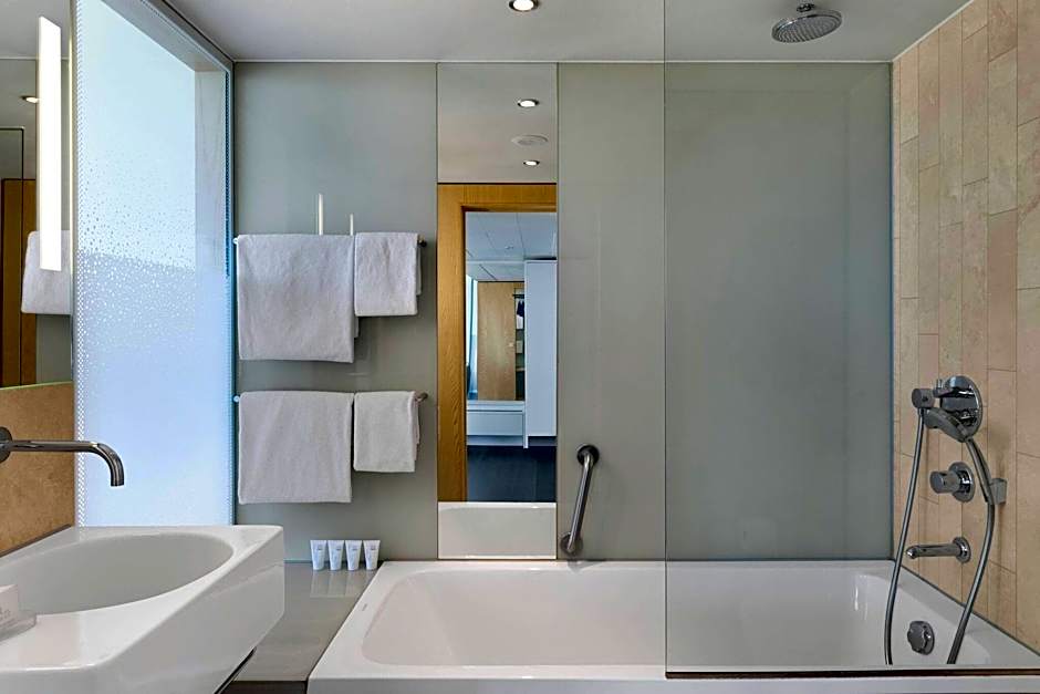 Very clean and spacious rooms with an amazing view of the city, some green spaces and the ocean. Staff at the front were very friendly and helpful. Very easy to get to the airport - two options of the metro 1 stop + long distance train 2 stops or two metros with a few stops on each of them (from the airport you can also jump on a local bus to Dragor). I think this hotel is primarily for the conference venue it is attached to, but it can also be an excellent, more affordable (than city center) place to stay for sigh seeing too. If staying at this hotel it is best to get a city pass for transit (either zones 1-4 or zones 1-99) as it a perfect place to hop on the subway and get to other places within minutes. You can take a single metro train and go to Kongens Nytorv or Norreport for city sight seeing or from Norreport you can transfer to other metros or catch trains to Roskilde, Helsingor or Hillerod. There is also a large mall one metro stop away at Orestad station. I would recommend staying here for a high quality hotel at a good price in Copenhagen.