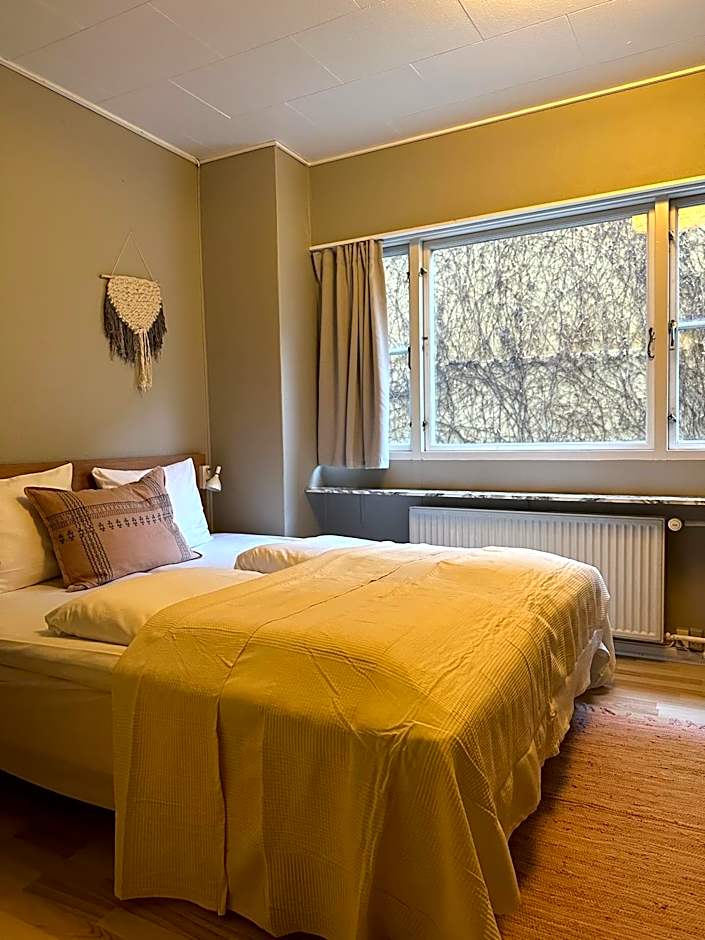 I spent the first night in a room on the first floor. I didn't like it. The heater was noisy and the ceiling is lower than on the upper floors. I asked to be moved to another room on the upper floors and they fulfilled that request. That room was much better. However, in general the rooms are, I would say, *slightly* run down. The shower hose in my second room was broken, spraying water all over. They replaced it. The bathroom door was damaged from water at the bottom. There were some stains on the carpet. Still, I would stay at this hotel again probably because of the vibe, location, and reasonable (for CPH) price.