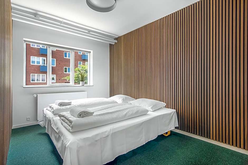 The bedroom was way bigger than expected, the view from the big windows was actually quite cute (a brick building and a slice of sky), there were a couple of shared toilets only a few steps away that were always clean and we never had to queue for them, the showers were nice and we also didn't have to queue, having a shared kitchen was great considering Copenhagen is an expensive city to eat out and the hotel is not that close to the main area, we were able to check-in earlier and keep our stuff in the locker after check-out on the last day. Additionally, one of us had to work from the hotel for a couple of days and there was a good office area in the room (table + chair) and high-speed internet. There isn't a reception, but they were quite responsive online, even minutes before check-in. While Copenhagen is a relatively small city and we actually walked to the city centre a couple of times (45-60 minutes), remember to take into account the cost of metro tickets, which are not the cheapest. Still, there is a metro station around 6 minutes from the hotel and the metro runs 24/7. This was a high-season last-minute trip for us, so compared to the prices we were finding it was definitely the best option for us.