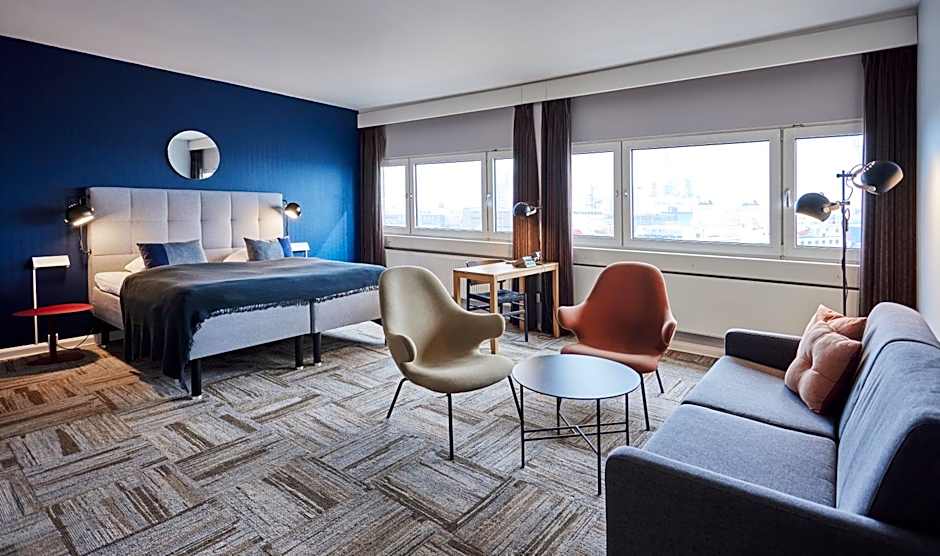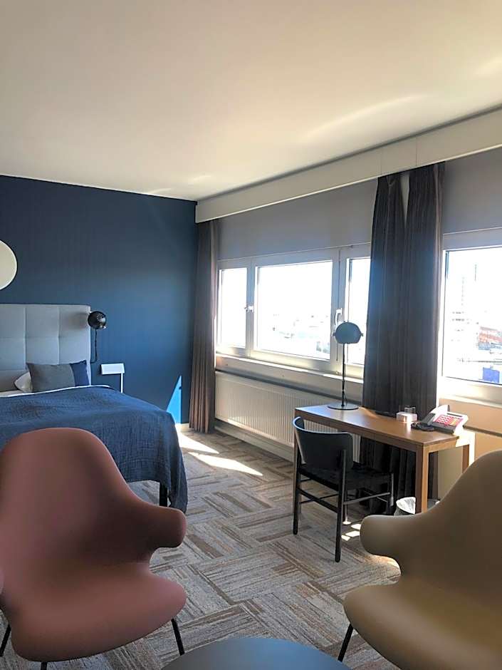 Superb room (although we were upgraded) with everything (except an electric kettle - as per usual in Scandinavia) including a very comfortable bed and separate WC and roomy bathroom. The restaurant which had wonderful views served an excellent meal and all the staff were great.