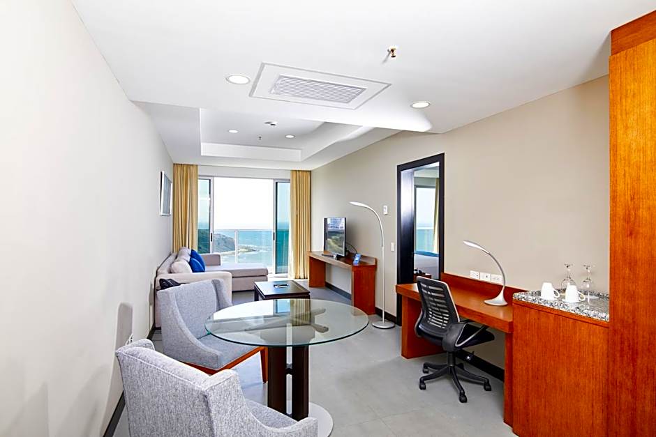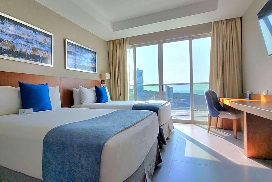 Experience the height of comfort in the elegantly designed rooms at the Wyndham Manta Sail Plaza Hotel and Convention Center. Choose from a range of accommodations that cater to different group sizes and preferences. The Deluxe King Suite offers spacious luxury, accommodating up to 4 adults and 3 children, with a comfortable king-size bed. The Executive Double Room - Non-Smoking is perfect for families or friends, with 2 queen-size beds to accommodate 4 adults and 2 children. For a more intimate stay, the Executive King Room - Non-Smoking offers a king-size bed and comfortably accommodates 3 adults and 2 children. Away from home but still feeling right at home, the Wyndham Manta Sail Plaza Hotel and Convention Center ensures that every guest has a comfortable and enjoyable stay in Manta, Ecuador.