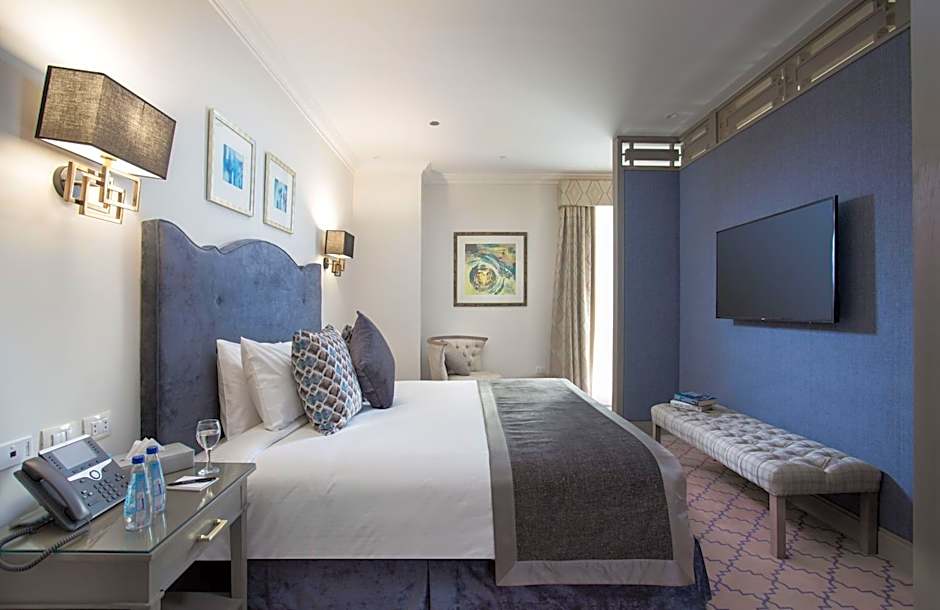 This luxurious suite offers a lot of space with separate living room and satellite TV. The bedroom comes with one king size bed. It has dining area, 2 bathrooms and a kitchenette. A balcony, a desk, air conditioning, mini-bar, safe and WiFi are also included.