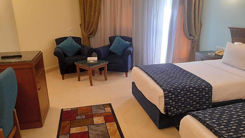 Relax in style at the Grand Pyramids Hotel, where your stay includes access to a sun deck, terrace, and garden with stunning views. With room service, a 24-hour front desk, and non-smoking rooms, your comfort is a top priority. Whether you're exploring the historic pyramids or unwinding by the pool, this hotel provides the perfect blend of modern amenities and Egyptian charm for an unforgettable stay.