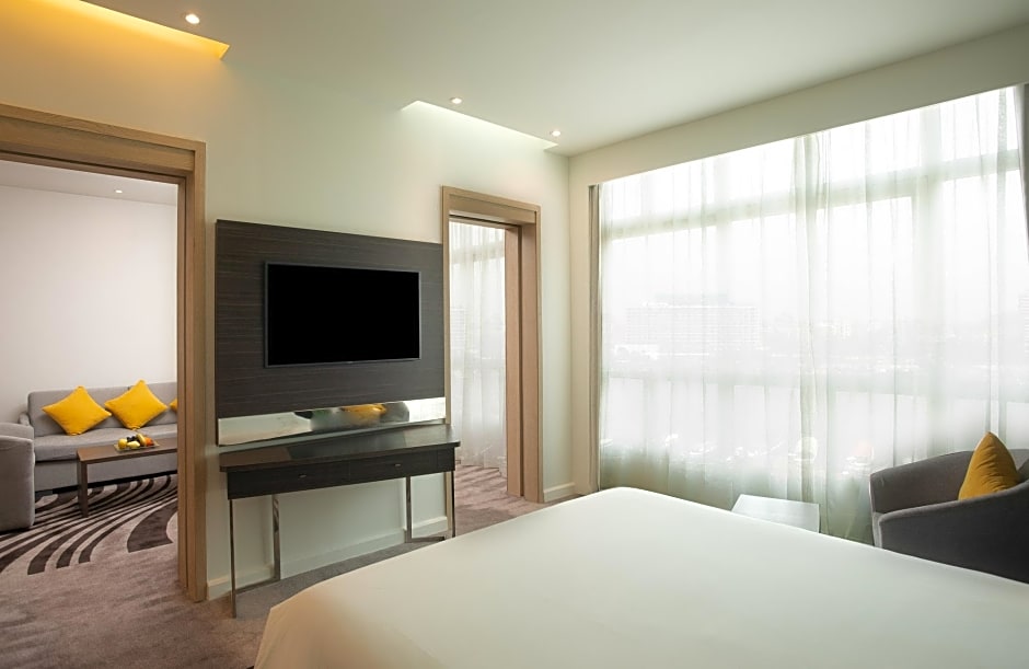 This modern and air-conditioned room features a view. It also includes a safety deposit box, a mini-bar, and a hairdryer.
