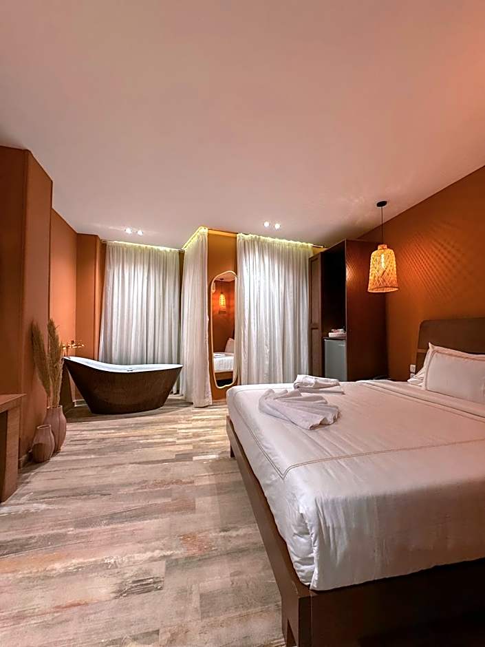 This suite's special features are the hot tub and the fireplace. Featuring a private entrance, this air-conditioned suite consists of 1 bedroom and 1 bathroom with a walk-in shower and a bath. Boasting a terrace with mountain views, this suite also provides soundproof walls and a flat-screen TV. The unit offers 1 bed.