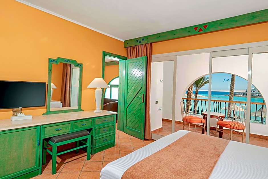Arabia Azur Resort is a 4-star beachfront retreat in Hurghada, Egypt. Located on El Cornich Road, it sits right on the coast with a private beach area and is about 2,3 mi from the city center. Breakfast is offered, and the property has accumulated 2,460 reviews. Minimum price starts from $162 per night.