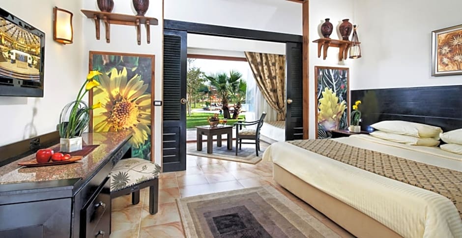 Overlooking the pools or Aqua park, this spacious room offers telephone, satellite TV, air-conditioned, mini bar, kettle, safe deposit box, hairdryer, balcony or terrace, bathroom with shower.