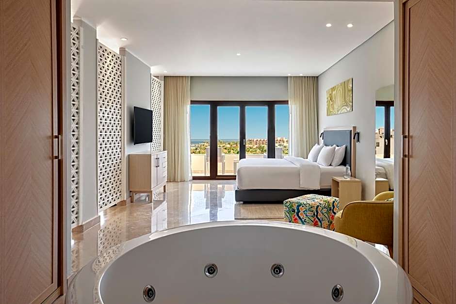 The Steigenberger Aldau Beach Hotel offers The View Suite, which is an adults-only suite with a size of 1076 sqft. Smoking is not allowed in this room. It can accommodate 2 adults and features one king-size bed.