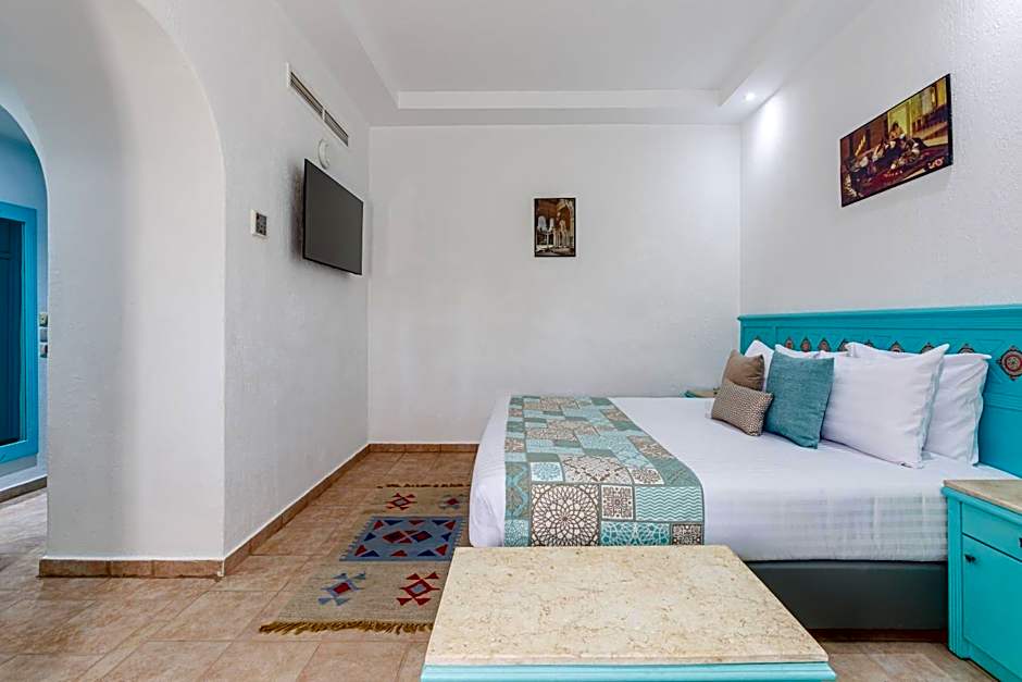 The room features a king size bed or twin beds and a bunk bed. It also offers a bathroom with a shower, a small seating area and a terrace or balcony. The room also features free toiletries, free WiFi, a satellite LED TV, a safe box, tea and coffee facilities and a mini-bar.