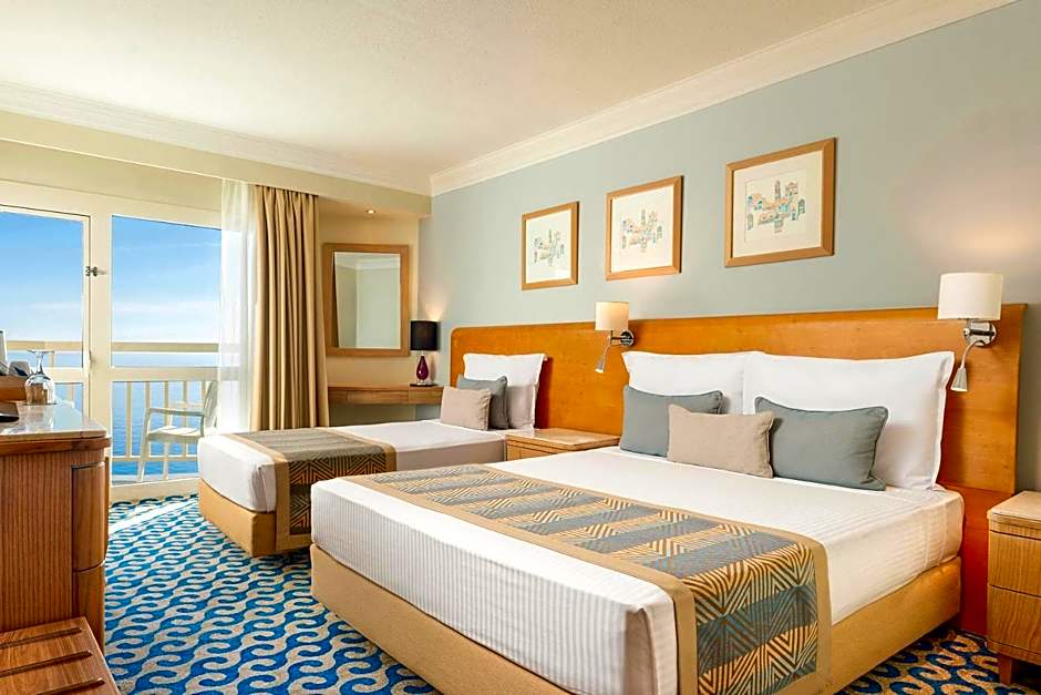 Take the magnificent direct sea view of this modern room with a balcony. Keep in touch with WiFi or stay entertained with multiple local and international TV channels. Pamper yourself in the large bathroom. Family Deluxe sea view has 2 beds 1 Queen and 1 Single. Max occupancy 2 Adults + 2 Child or 3 Adults + 1 Child.