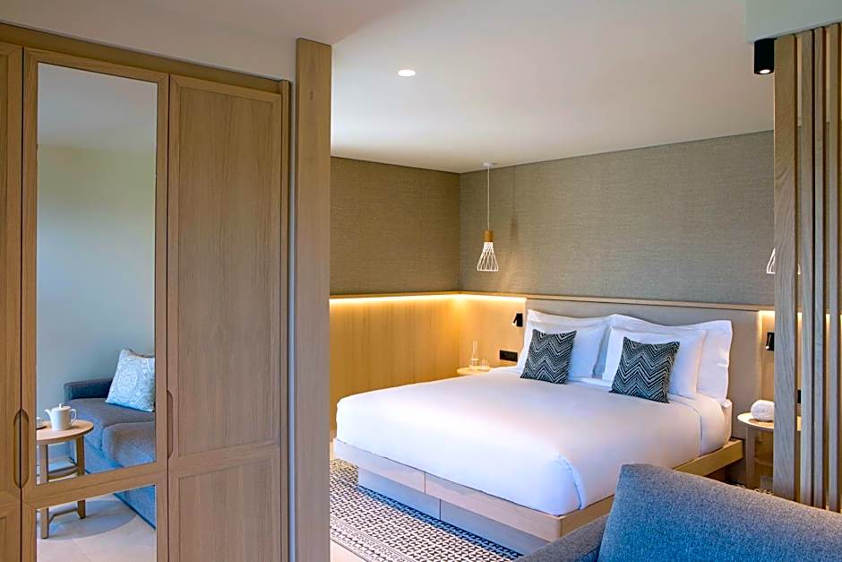 Η απόλαυση στην πισίνα εμφανίζεται σε πολλές μορφές: δύο εξωτερικές άπειρου ορίου (infinity) πισίνες με θέα και ρηχές πλευρές (διαθεσιμότητα ανά εποχή) καθώς και μια εσωτερική θερμαινόμενη πισίνα για κολυμβητές όλη τη χρονιά. Ορισμένα καταλύματα διαθέτουν επίσης ιδιωτικές πισίνες, όπως η Σουίτα με τζακούζι, το Δωμάτιο ενός Υπνοδωματίου με Πανοραμική Θέα στη Θάλασσα και Ιδιωτική Πισίνα, ή το Deluxe με Ιδιωτική Πισίνα, προσφέροντας μια πινελιά πολυτέλειας δίπλα στην πόρτα. Η πρόσβαση στην παραλία με ομπρέλες και ξαπλώστρες ενισχύει την παραλιακή ατμόσφαιρα, και υπάρχει γυμναστήριο για όσους θέλουν να συνδυάσουν χαλάρωση με δραστηριότητα.