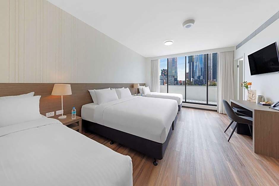 Le espera una selección versátil de habitaciones, incluidas habitaciones Executive con vistas a la ciudad y diversas configuraciones, junto con las clásicas habitaciones Queen y King. Esta disposición ofrece opciones prácticas y pensadas para los viajeros que se adaptan a distintos itinerarios, todo dentro de una base conveniente para explorar Melbourne.