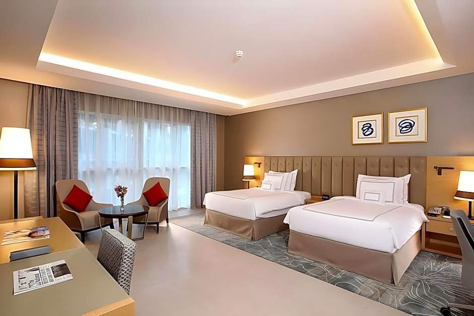 Bienvenido al Grand Cosmopolitan Hotel, su lujoso oasis en el corazón del vibrante Dubái. Este reluciente refugio de 5 estrellas está situado en Al Barsha 1 Street, a solo 7,7mi del animado centro de la ciudad. Con precios desde $96 por noche, podrá sumergirse en un mundo de comodidad y sofisticación mientras disfruta de instalaciones impresionantes que atienden a todos sus caprichos. Ya esté tomando el sol junto a la piscina exterior o regalándose una sesión de spa rejuvenecedora, se sentirá como la realeza en este magnífico establecimiento.