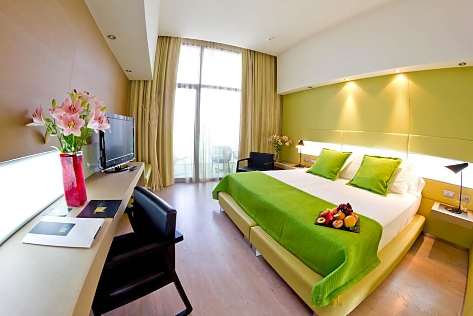 Smart, clean and comfortable rooms. Staff were friendly and polite .Great bathroom with amazing shower and sunken bath. Walk in wardrobe . Nice breakfast although if you want to sit outside it is a little inconvenient where the restaurant is positioned . Lovely pool area although shame fountains were not on when we visited . Large bottle of water in room replaced daily .
