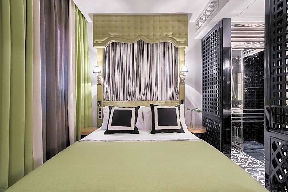 Para quienes no resisten un poco de mimo, Room Mate Anna, Barcelona se asegura de que todas tus necesidades estén cubiertas con detalles pensados que añaden un toque extra de confort a tu estancia. Imagínate hundiéndote en las suntuosas sábanas de una cama doble o king tras un día de exploración. ¿Antojo nocturno? ¡El servicio de habitaciones está a tu disposición! Además, contarás con artículos de tocador de cortesía que elevan tu ritual de baño a una experiencia tipo spa en la comodidad de tu propio y lujoso baño. Tanto si estás descansando en tu estilosa habitación como si te relajas junto a la piscina, cada momento en este hotel se siente como una pequeña escapada de la realidad.