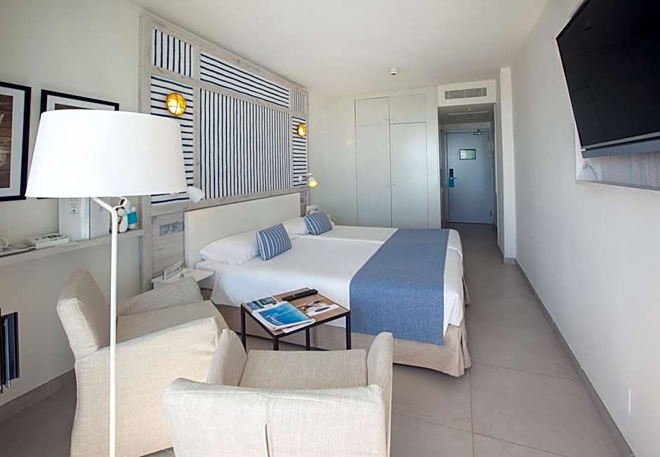 Dos piscinas al aire libre mantienen vivo el ambiente frente al mar: la Piscina 1 cuenta con un extremo poco profundo para un chapuzón rápido, mientras que la Piscina 2 está climatizada, también tiene zona poco profunda y acoge a huéspedes de todas las edades durante todo el año. Una terraza con solárium invita a tumbarse al sol, y un gimnasio completa las opciones activas con acceso gratuito.