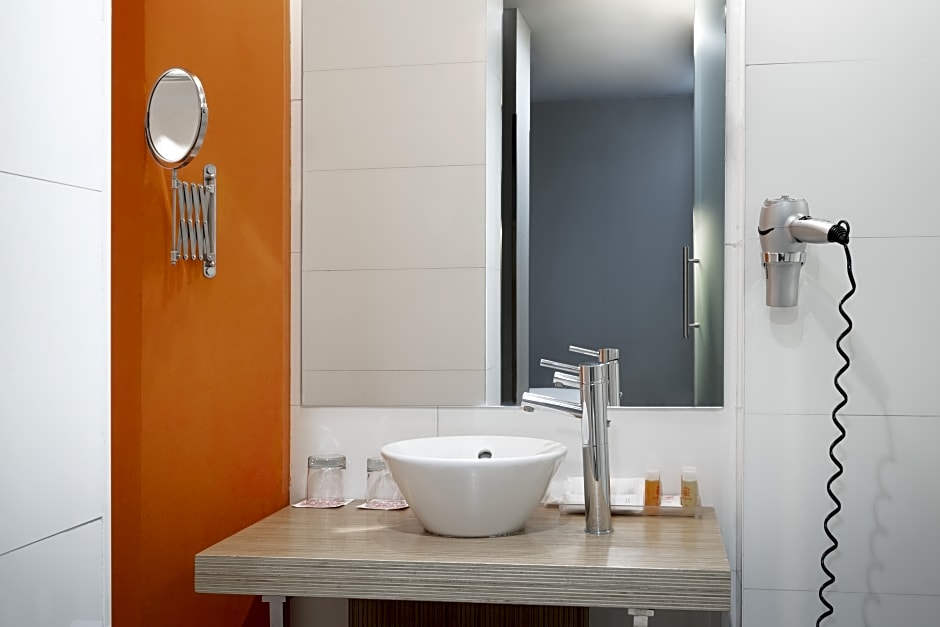 Clean room! A very comfortable and firm bed. Narrow pillows (unusual to me), soft and comfortable. The room heat came on quickly when I needed it. I did turn the heat down for sleeping. Good outlets for charging phone and laptop. I noticed very little noise from the street or in the 4th floor hallway. The room had a kettle to boil water, packets of tea and instant coffee, and 2 bottles of water. Good sized bathroom. Hot shower with good water pressure. Drained well. Suggestion: Add signs that toilet paper should go into the basket. STAFF: Adelina at reception was very attentive. She coached me in using the QR code for contacting Le Room Service (see below) and also provided me with information about nearby restaurants and a corkscrew. Shirley was patient and helpful while I was making payment by phone before my arrival. Consuelo in housekeeping redirected me from the wrong floor more than once. The young men at Reception in the mornings also were cheerful and helpful. Apologies - I cannot remember the names. 5TH FLOOR BREAKFAST ROOM: The views of neighboring buildings and streets are wonderful. Breakfast was OK, but no complaints. Admittedly, I didn’t want to eat much before my daily walking tours. Suggestion: Though there are only a few stairs going into the breakfast room, a railing would be helpful. LOBBY: Coffee, tea, hot water and ice are available 24/7. Mid-day there were also small pastries, probably from breakfast, but the ones I had were fresh and tasty. LOCATION: The hotel is a few feet from the corner of Calle de Alcala, a main street. I loved walking everywhere even in the rain. Quite a few streets were blocked with large cement humps and open only to pedestrians and occasional slow-moving police cars. Meeting places for my tours were all within within a short walk: Puerta Del Sol less than 10 minutes; Plaza Mayor and the Prado Museum each about 15 minutes.