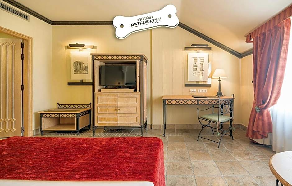 This is the second time we've stayed in this hotel. It's very central, being on the Plaza de Espana and is an easy walk to all the cultural and historic sights. The hotel itself has an imposing facade, with a small terrace at the front. The interior is impressive and imposing, with an interior patio, and the staff are very welcoming. Getting to the hotel is straightforward but parking in Merida is a nightmare so on both occasions we've opted for the valet parking which is a very slick operation. If the room isn't ready on arrival they look after your luggage and leave it in the room for when you check in. The room was a great size with a very big bed which was comfortable and had good pillows. There was complimentary water and chocolates and also a box of chocolates on the bed for my husband whose birthday it was the day we arrived. Everywhere was very clean and the aircon was very good as it was constant instead of being either freezing cold or not cold enough. Also a lovely bar/restaurant on the square right opposite the hotel (a chiringuito rather than the bars in the buildings) which served fab food!