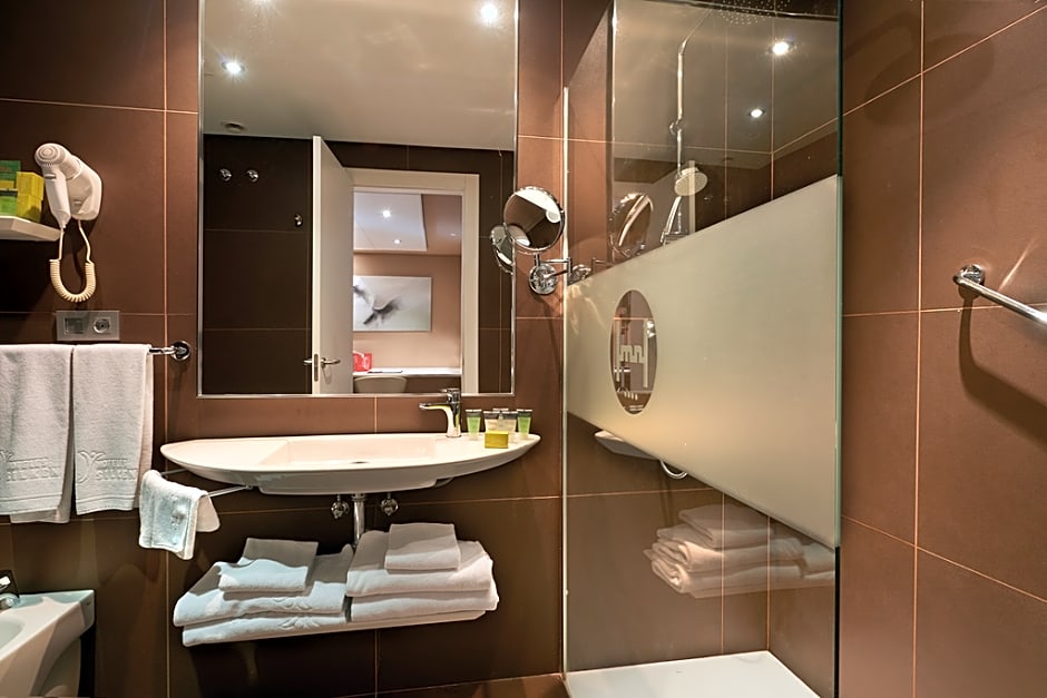 We were travelling from western Spain to the ferry at Santander and therefore broke our journey at Oviedo. On arrival we were directed to the underground car park (cost 15 Euros) which is very conveniently situated and provides easy access to the hotel. I liked the fact that there was a bath as well as a shower and bidet in the bathroom. Had we stayed for longer we might have used the swimming pool which looked most inviting.