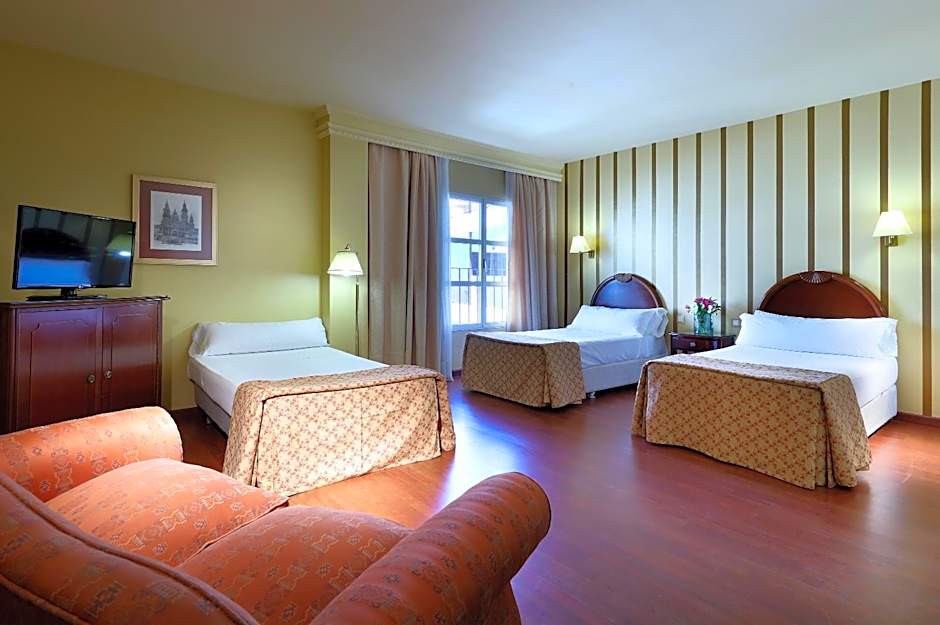 Recycling an old monastery for accommodation makes great sense. I loved the cool, wide, corridors, marble stairs, high ceilings, and the little cloister where I sat reading one sunny afternoon. Friendly staff- and so helpful with my poor Spanish. My husband thoroughly enjoyed the breakfast buffet, and conquered the toaster after only three days. Our room had a balcony, and a bath. Loved that bath. Artworks and paintings are everywhere , preserved from its past life. It would be interesting to know more about their history.