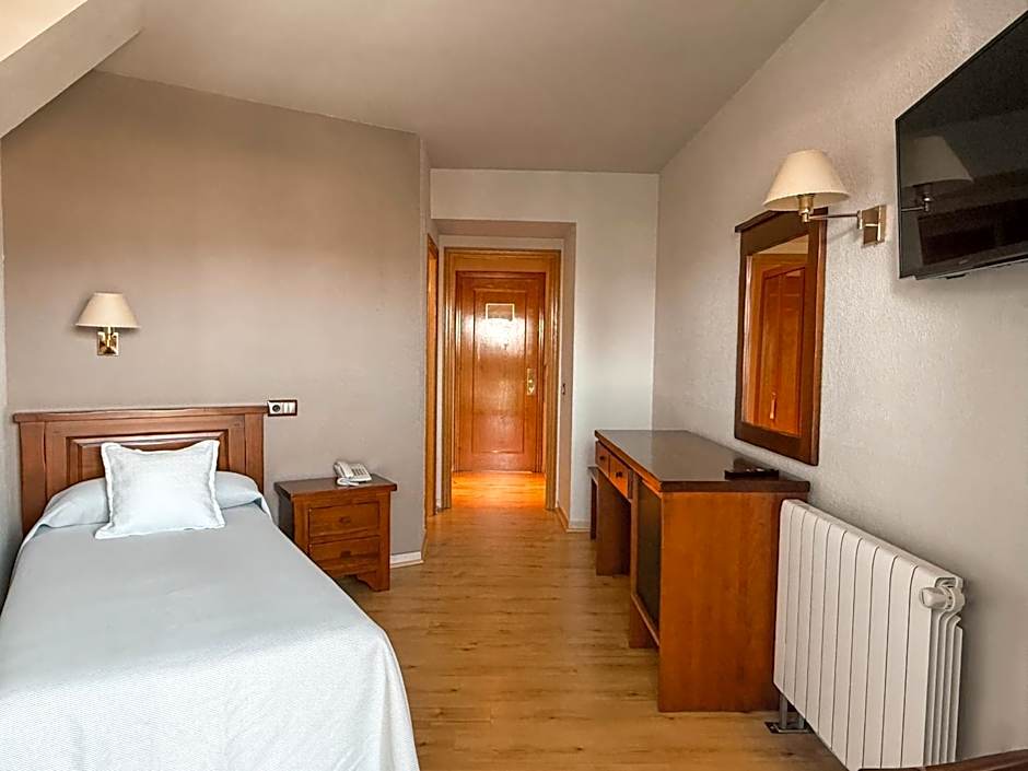 Good simple hotel. One-bed room more then ok. Nice and large terrace, with chair and table, and -most importantly- an ashtray. Breakfast very good, served from 7:30 on. Large parking in front of hotel. Location just by the main road to Barcelona, when coming from Andorra.