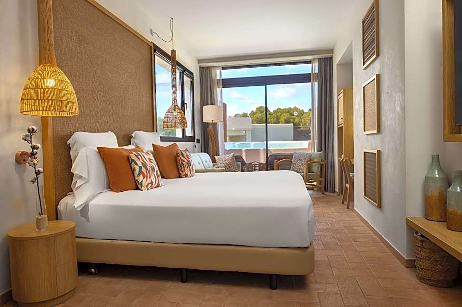 Para quienes prefieren relajarse en la comodidad de su habitación, el hotel lo facilita con servicios sin complicaciones: imagina servicio a la habitación listo para llevar tus aperitivos favoritos o una bebida refrescante, perfecto para disfrutar en tu balcón. La piscina exterior solo para adultos te invita a tomar el sol y sorber bebidas frescas, mientras que el jacuzzi ofrece un rincón acogedor para relajarte después de un día de explorar la isla. Con Wi‑Fi gratuito en toda la propiedad, puedes mantener informados a tus amigos sobre tu espléndida escapada a Ibiza o simplemente navegar por las fotos de tus pintorescos alrededores.
