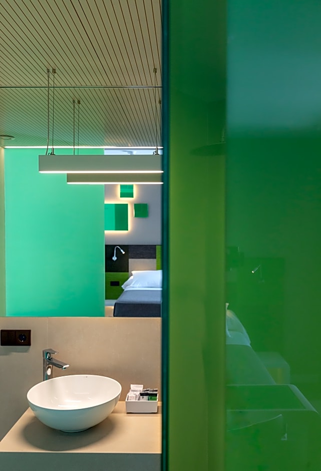 Bathroom: The bathroom has a transparent green glass which didn't give much privacy when using the shower or toilet, you can see the silhouette of the person as well as hear every sound. For a couple I think it would be okay, but when sharing with friends it's awkward. The shower was nice with 2 different shower heads, however the drainage system isn't the greatest because water went all over the floors and didn't only stay in the shower. It didn't affect my stay at the hotel but i felt bad for the cleaning staff who would have to clean up the bathroom.