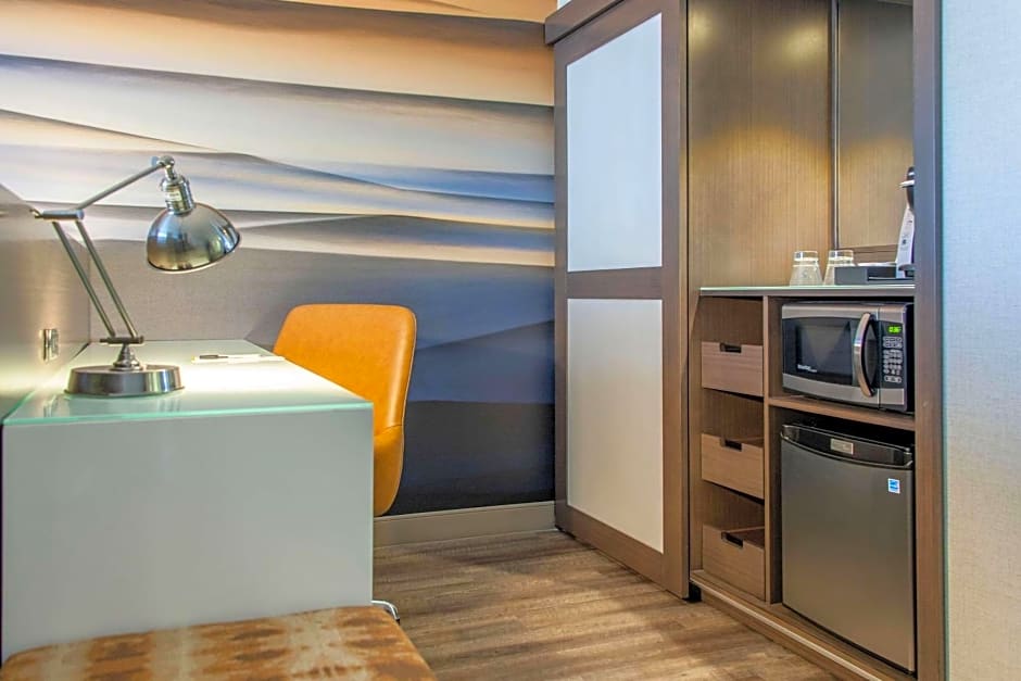 Bienvenido al Cambria Hotel Phoenix- North Scottsdale, un encantador y lujoso hotel de 4 estrellas ubicado en Phoenix, Arizona. A solo 16,4mi del centro de la ciudad, este hotel ofrece un retiro tranquilo y conveniente para los viajeros. Con un impresionante 221 opiniones, este hotel ha ganado una reputación de excelencia. Desde el momento en que llegas a la recepción abierta las 24 horas, serás recibido con una cálida hospitalidad que te hará sentir como en casa. El hotel ofrece una variedad de comodidades que incluyen estacionamiento gratuito, WiFi gratuito y un servicio de transporte gratuito. Da un chapuzón en la piscina al aire libre o relájate en la bañera de hidromasaje después de un largo día explorando la ciudad. Para aquellos que disfrutan de una partida de golf, el hotel también cuenta con un campo de golf disponible por un cargo adicional. Las habitaciones elegantemente diseñadas cuentan con comodidades modernas como aire acondicionado, TV de pantalla plana y un baño privado con artículos de tocador de cortesía. Despierta sintiéndote fresco y lleno de energía después de una noche de sueño reparador en las cómodas camas. El hotel también cuenta con un restaurante y bar, perfecto para disfrutar de una deliciosa comida o relajarse con una bebida. Ya sea que viajes por negocios o por placer, el Cambria Hotel Phoenix- North Scottsdale es la elección ideal para tu estancia en Phoenix.