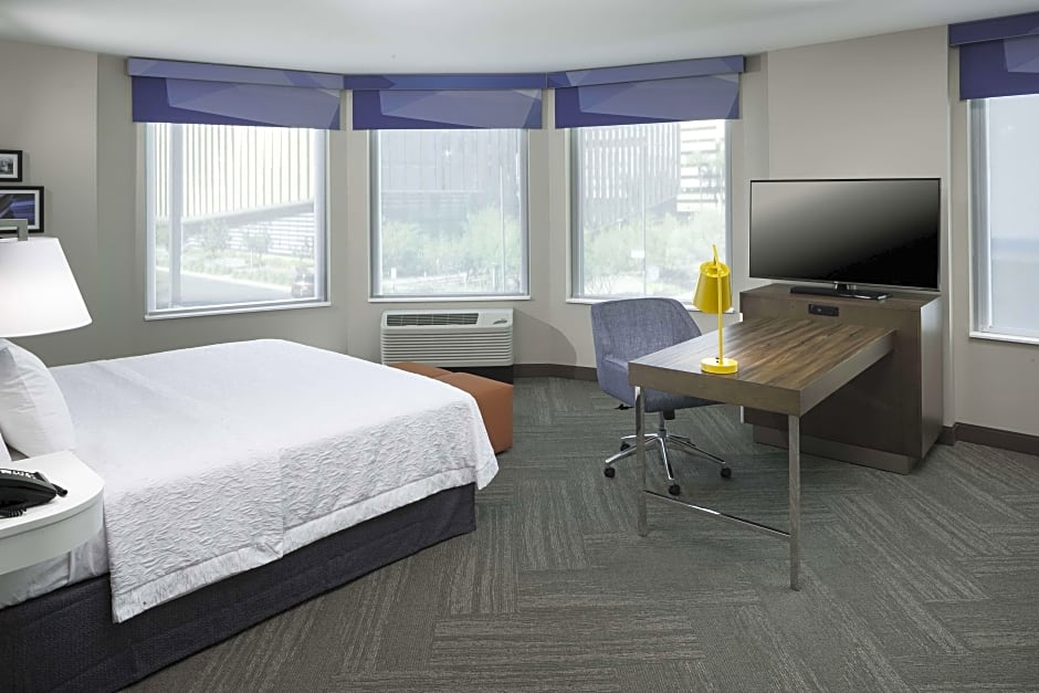 Hampton Inn & Suites Phoenix Downtown es un hotel de 3 estrellas en Phoenix, Estados Unidos, situado a solo 0,3mi del centro de la ciudad. La dirección es 77 E Polk St y se ofrece desayuno a los huéspedes para un inicio del día cómodo.