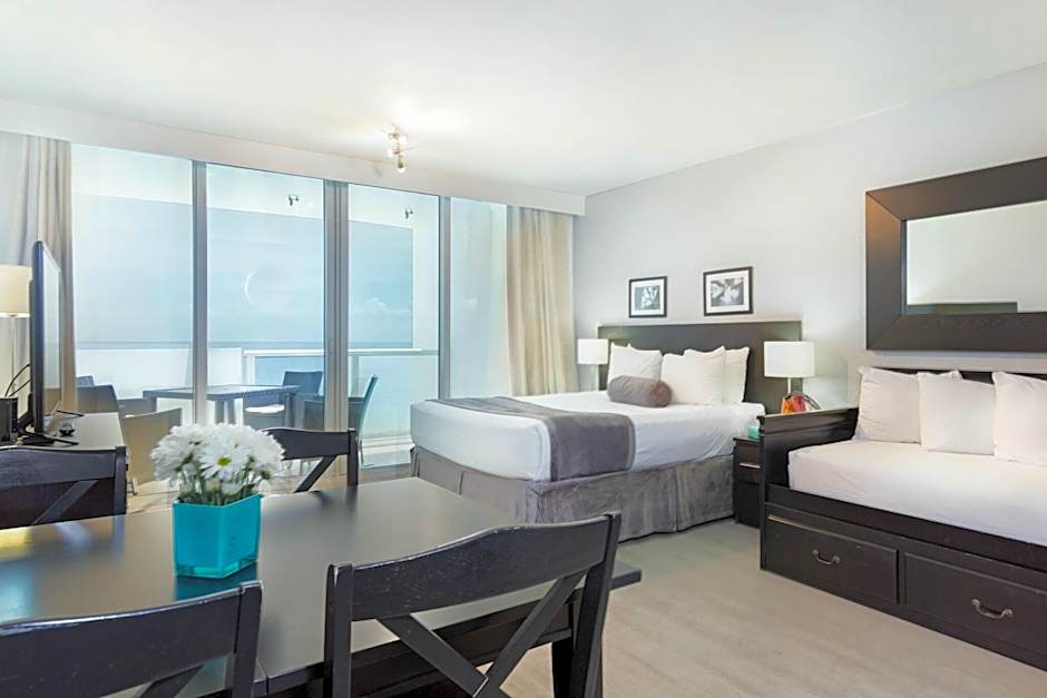 ¿Listo para reservar su estancia? Elija entre una variedad de tipos de habitación disponibles en [nombre del hotel] para adaptarse a sus preferencias y necesidades. Desde acogedores estudios hasta amplios apartamentos de un dormitorio, cada alojamiento está cuidadosamente diseñado para ofrecer comodidad y conveniencia durante su estancia. Con la opción de disfrutar de una zona de playa privada, piscinas exteriores y un gimnasio gratuito, su escapada a Miami Beach estará llena de momentos inolvidables y relajación.
