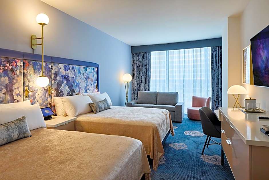 Cuando llegue la hora de acomodarte en las habitaciones, apreciarás comodidades modernas como el aire acondicionado y los baños privados con artículos de tocador gratuitos, que hacen tu estancia cómoda y práctica. El hotel mantiene todo sencillo y libre de estrés con opciones de pago en línea fáciles que incluyen Visa, Mastercard y American Express: ¡no necesitas efectivo! Con un personal entusiasta listo para ayudar, una ubicación privilegiada y fantásticas instalaciones, Loews Hotel en Orlando crea el escenario para una escapada memorable llena de confort, diversión y un pequeño toque de la magia de Florida.