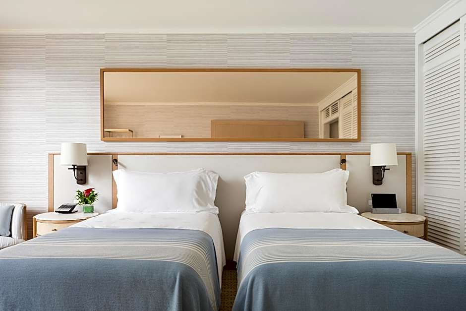 Halekulani - NO RESORT FEE destaca como un refugio frente a la playa de 5 estrellas en Honolulu, Hawái. Ubicado en 2199 Kalia Road, este resort se encuentra justo sobre la arena, a unos 2,6mi del centro de la ciudad. Con 719 reseñas que dan forma a su historia y precios a partir de $620 por noche, la estancia combina una hospitalidad refinada con el encanto soleado de Hawái. Wi‑Fi gratuito y un servicio de traslado al aeropuerto complementario facilitan las llegadas, mientras que una recepción 24 horas y opciones con vistas al océano dan la bienvenida a los huéspedes día y noche.