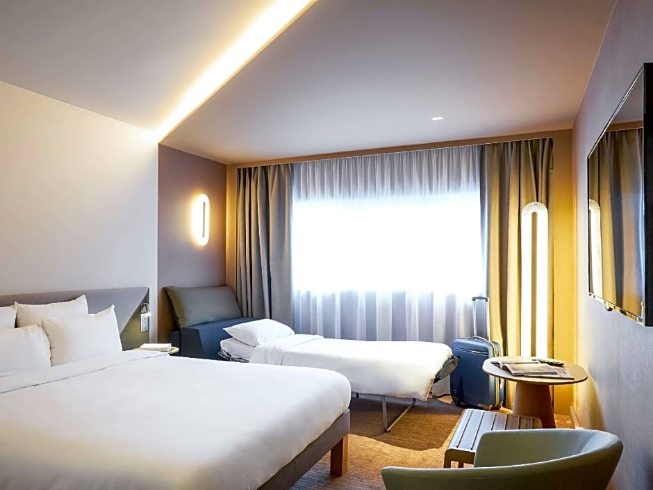 This hotel was a very comfortable stay overall. The beds and pillows were great, the room was spacious with a large window, and the air conditioning worked well. The rooms and bedding were clean, and we really appreciated the coffee/tea facilities, daily replenished coffee machine, and the inroom safe. The garden with swimming pool, lounge, and activities for all ages made the stay even better. The staff were friendly, and the 24hrs front desk was very convenient. Parking was ample and free of charge, and the location was close to the train station and supermarkets/ shopping mall. There was also a drinking water dispenser, and the large TV was a nice touch.