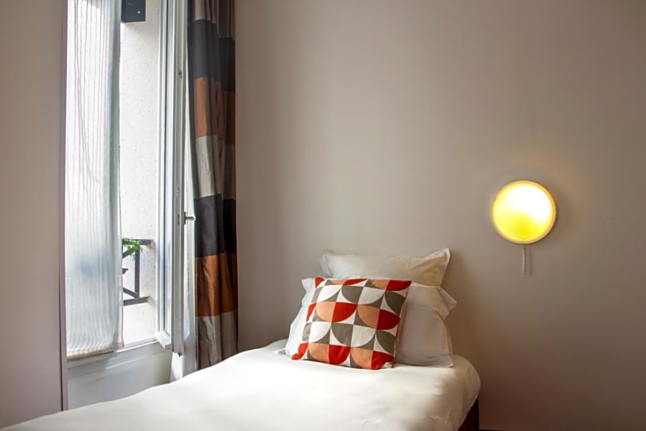 Nicely located almost over the Metro Pernety with nice restaurants, boulangeries, markets etc connected by a bus to Place D Italie.... polite (but ineffective on a single issue - see comment) staff who helped with a few things , the room , bathroom are nicely appointed but with just enough space to move around the bed with dangerously low protruding obstructive beams. Could do with glasses instead of paper cups. Requested housekeeping to change sheets last day which unfortunately didn't happen though they cleaned the room well and provided fresh towels and extra duvet. I would go back to stay but they need to take customer complaints a lot more seriously and provide closure if they display three stars on the door!