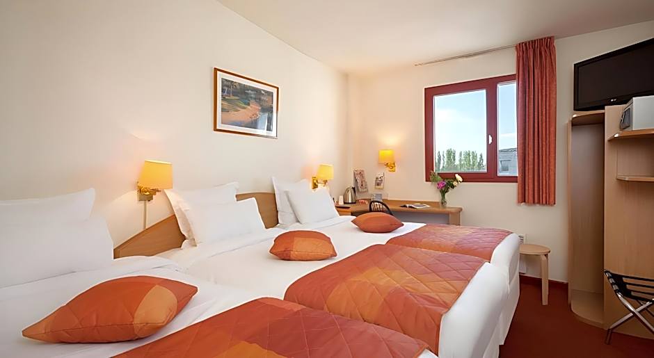 I stayed at this hotel near the Paris airport and overall had a pleasant experience. The room and bathroom were on the smaller side, but functional and clean. The amenities were solid — air conditioning kept the room comfortable, and the flat-screen TV and numerous power ports made it easy to relax and recharge (both myself and my devices!). The bed was firm but surprisingly comfortable, offering a good night’s sleep before an early flight. The best part of this hotel is its location — extremely convenient if you’re flying in or out of Paris and need a hassle-free place to rest. While it’s not overly spacious or luxurious, it’s efficient, comfortable, and great for short stays.