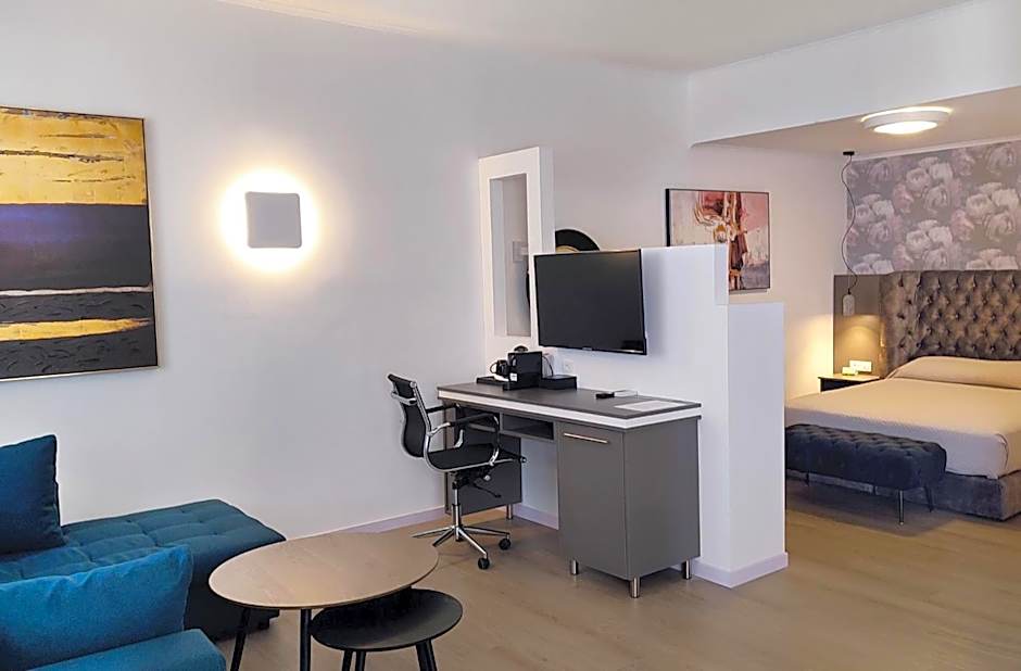 Dos restaurantes en el establecimiento invitan a los huéspedes a degustar sabores griegos, locales e internacionales en ambientes tradicionales. El Restaurante Principal ofrece una amplia variedad, mientras que Tavern on the Blue propone el mismo trío de cocinas en un segundo espacio igualmente acogedor. Al caer la noche, la música en vivo gratuita añade un ambiente festivo junto al mar, mientras las veladas se convierten en paseos a la luz de las estrellas por la terraza y los balcones con vistas al jardín.