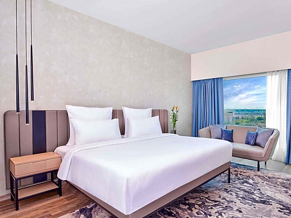 Novotel Mumbai International Airport es un hotel de cinco estrellas en Mumbai, India. Dirección: Cts 1359 Marol Next To Airport Metro Station Entrance No 3 Andheri Kurla Road. Situado a 2,3mi del centro de la ciudad, esta propiedad se encuentra cerca del bullicio de la zona y es de fácil acceso desde la estación de metro del aeropuerto. El hotel tiene 1,967 reseñas, lo que ofrece una perspectiva de viajeros experimentados sobre la estancia aquí.