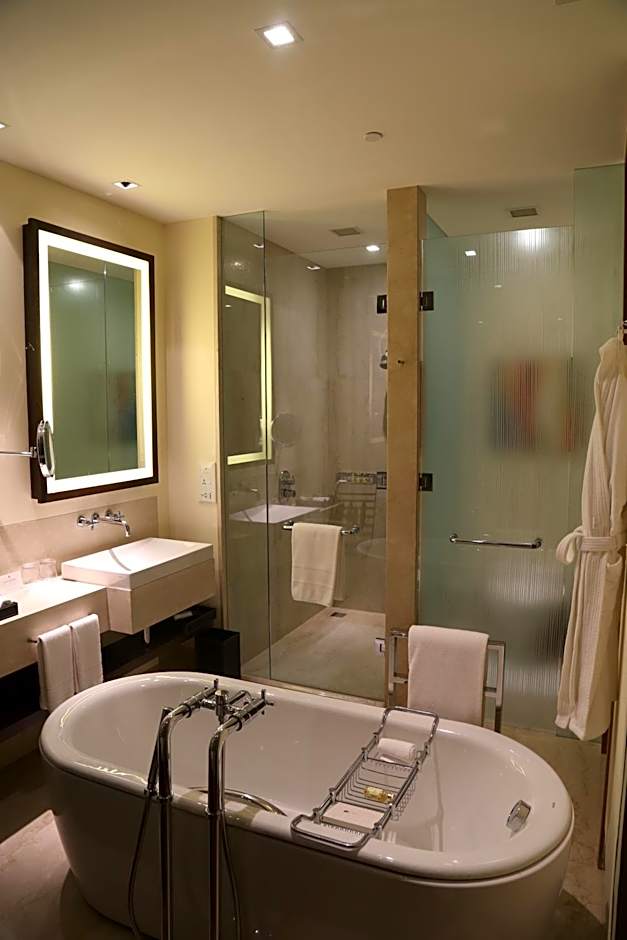 Opciones de comida y bebida son un punto destacado, con Amara ofreciendo un menú diverso que abarca sabores chinos, indios, italianos, pizza, locales e internacionales; Tuscany sirviendo cocina italiana moderna; y Kanak presentando platos inspirados en la India. El entretenimiento en la habitación incluye un servicio de streaming (como Netflix), mientras que un Bar con estilo y una terraza-sol invitan a veladas sencillas y días relajados. Música en vivo/actuaciones de libre flujo (gratuitas) añaden una banda sonora alegre, y las opciones con vista al jardín o a un punto de referencia proporcionan un telón de fondo escénico. Las familias apreciarán comidas infantiles gratuitas y habitaciones para no fumadores.
