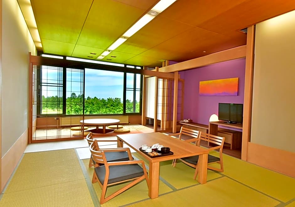 Una amplia gama de opciones de habitación atiende a diferentes estilos y tamaños de grupo, desde Japanese Premier Twin con vista al golf hasta Premium Twin e incluso suites. Para quienes buscan más espacio, la Premium Twin con zona de tatami en el piso más alto se extiende aproximadamente 570 pies cuadrados, mientras que las habitaciones Premium Twin y Premium, 2 Twin ofrecen alrededor de 560 pies cuadrados. Hay configuraciones familiares disponibles en las listas Japanese Style Corner, y varias habitaciones de estilo japonés cuentan con vistas a la montaña o al golf para mejorar la estancia.