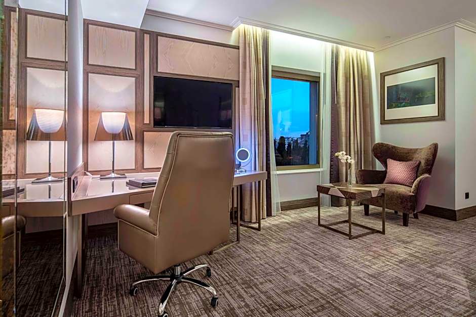 En el [Hilton Podgorica Crna Gora], puedes elegir entre una variedad de tipos de habitaciones espaciosas y cómodas, cada una diseñada pensando en tu comodidad. Ya sea que optes por la lujosa Suite Junior King con acceso al salón o la elegante Habitación Deluxe King con vista al parque, tienes garantizado un reparador descanso nocturno. Con una variedad de comodidades y capacidad para tres adultos y dos niños, estas habitaciones ofrecen el santuario perfecto durante tu estancia en Podgorica.