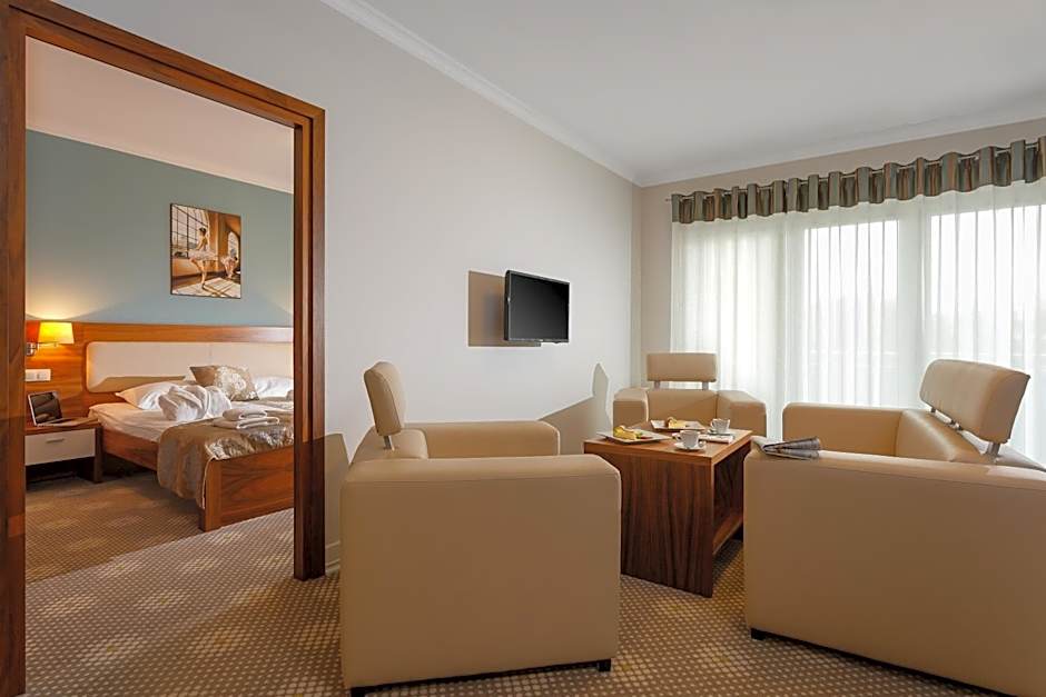La oferta gastronómica del establecimiento es amplia: el Bistro Burta propone un espacio moderno y familiar con platos polacos e internacionales, mientras que Wanta ofrece sabores polacos en un ambiente más sencillo. Para relajarse hay paquetes de spa y un baño turco/vapor, complementados por una piscina cubierta para disfrutar durante todo el año.