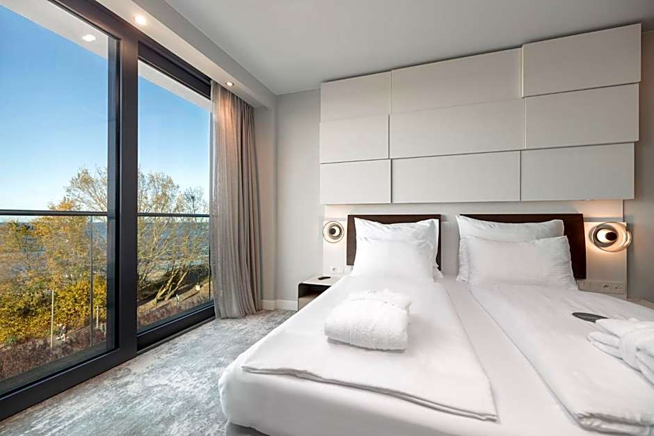Marine Hotel by Zdrojowa es un hotel de cinco estrellas en Kołobrzeg, Polonia, ubicado en Sulkowskiego 9, a unos 1,3mi del centro de la ciudad. Ofrece ubicación frente a la playa, poniendo la orilla al alcance para paseos relajantes y aventuras llenas de sol.