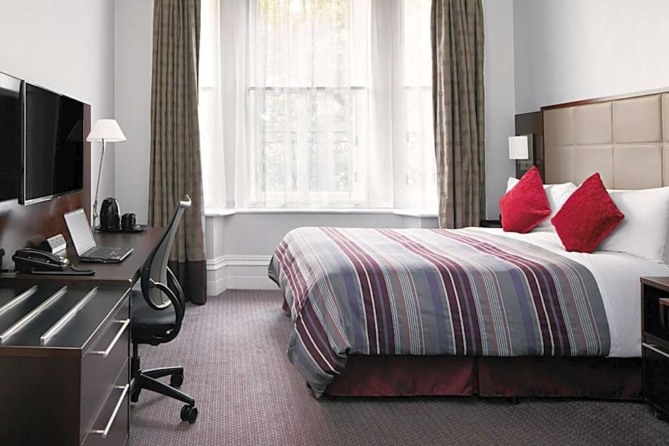 The Grand at Trafalgar Square también cuenta con habitaciones amplias y bien equipadas con comodidades modernas como cocineta, baño privado y televisor de pantalla plana. Puede relajarse en la cómoda zona de estar, o aprovechar la ubicación privilegiada del hotel para explorar atracciones cercanas como Trafalgar Square, Buckingham Palace y el distrito teatral del West End. Con precios desde $233, este hotel ofrece una excelente relación calidad-precio y una experiencia realmente inolvidable en el corazón de Londres.