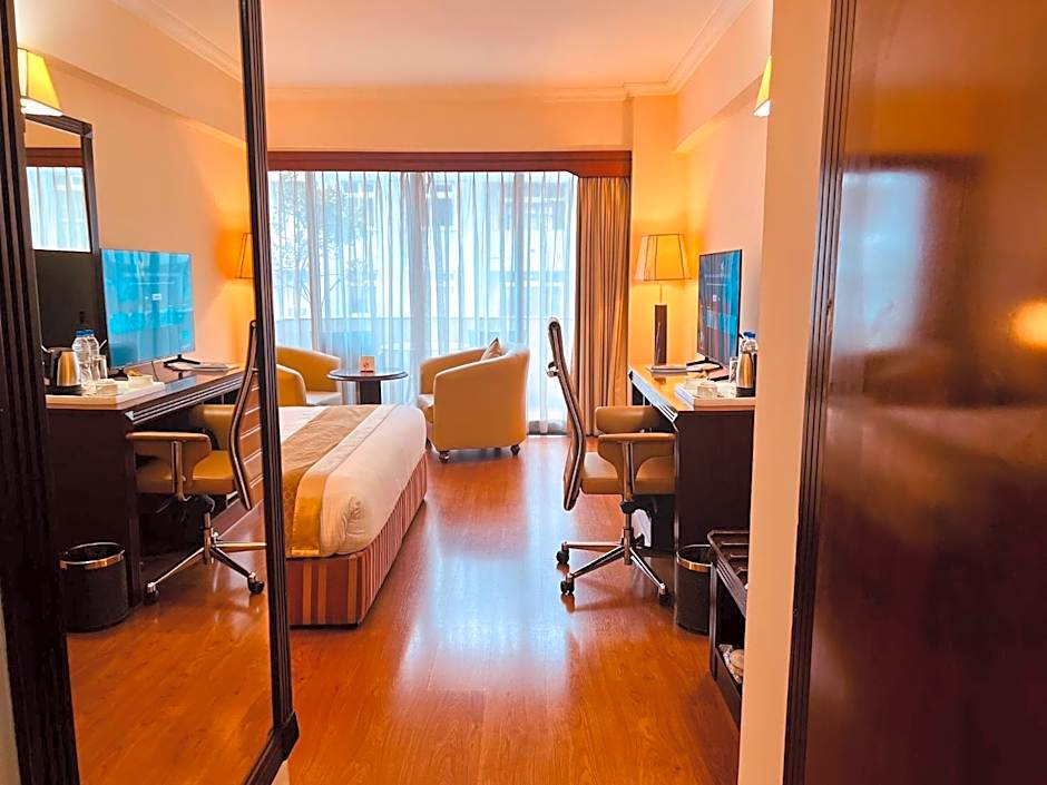 This spacious, modern room features a flat-screen TV, a mini-bar, and a bathroom with bath tub or shower.