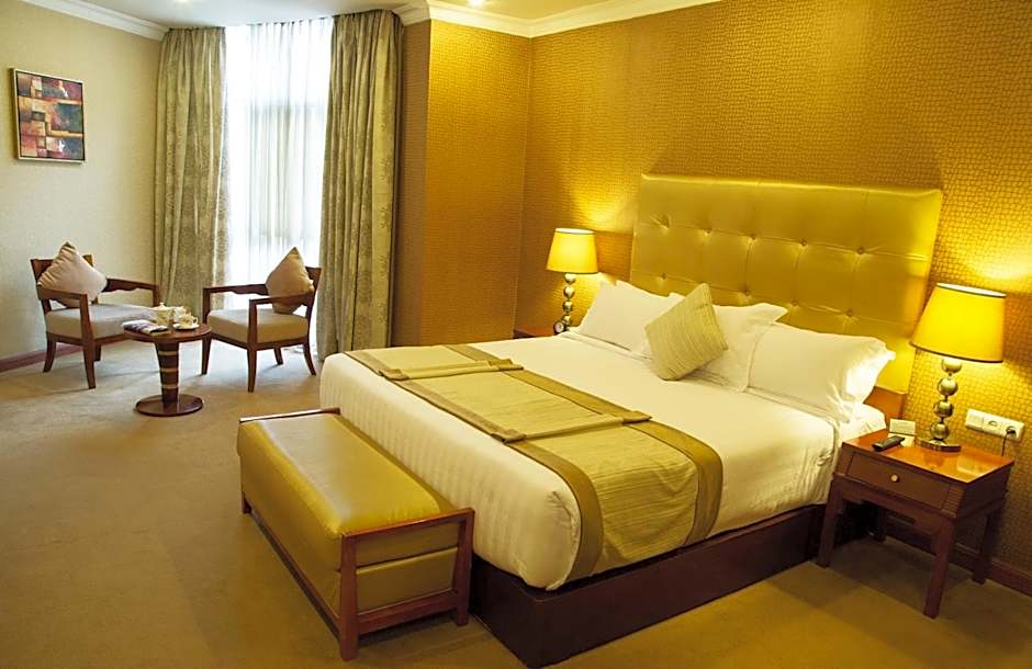 With scenic views of the Addis Ababa, this suite has spacious lounge, flat-screen satellite TV, desk, mini-bar and private bathroom with a shower.
