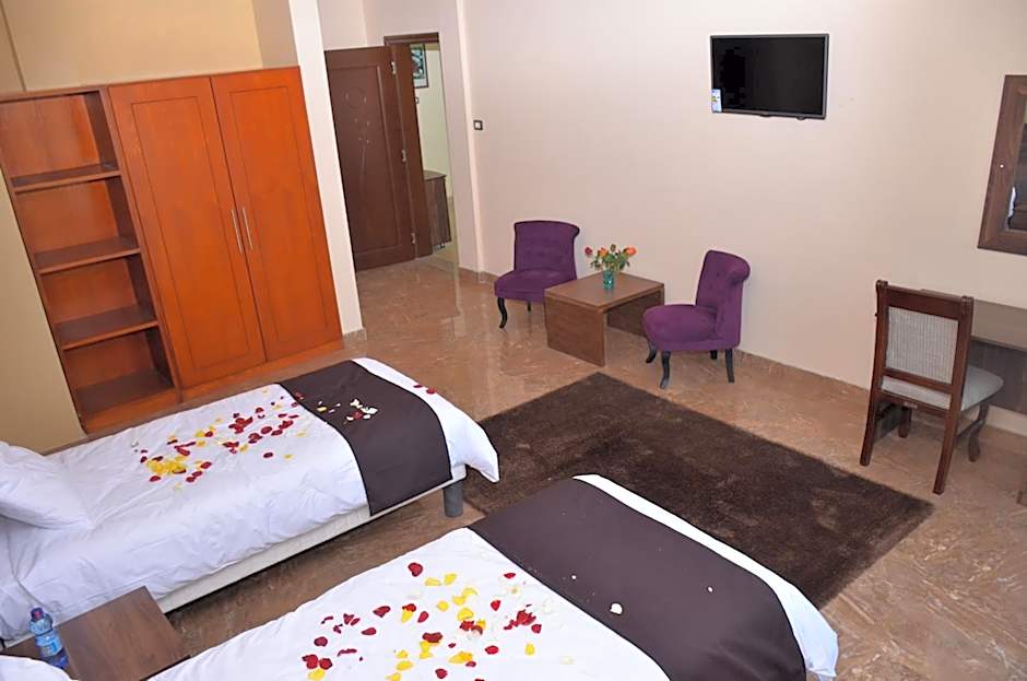 is a 2-star hotel in Addis Ababa, Ethiopia, located about from the city center. The address coordinates are 9.007632233121122, 38.79779433863426, marking a spot in the Ethiopian capital.