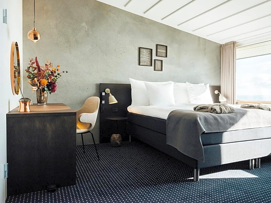 Deluxe room with Sea View - Sleeps 1-2 / 82 ft² These stylish rooms are located on the upper floor of the main building. Room rates include wifi, chrome cast, coffee/tea facilities, hairdryer and ironing facilities. Bed options: One large double bed or two single beds. Roll-away bed or baby crib available upon request. Extra fees apply. Private bathroom with shower over bathtub.