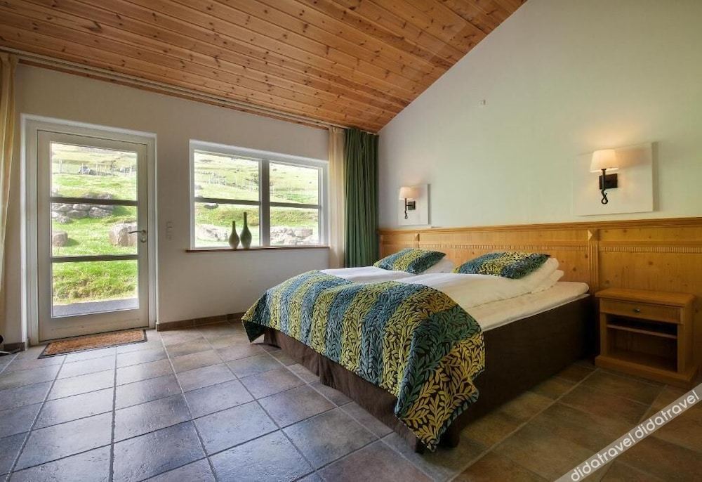 Despite being 15,6mi from the bustling city center, Gjaargardur Guesthouse Gjogv delivers a peaceful retreat with a warm, inviting atmosphere. Whether you’re looking to savor local flavors at the onsite restaurant or enjoy the stunning vistas right outside your window, this guesthouse promises a memorable Faroese experience packed with genuine hospitality and scenic charm.